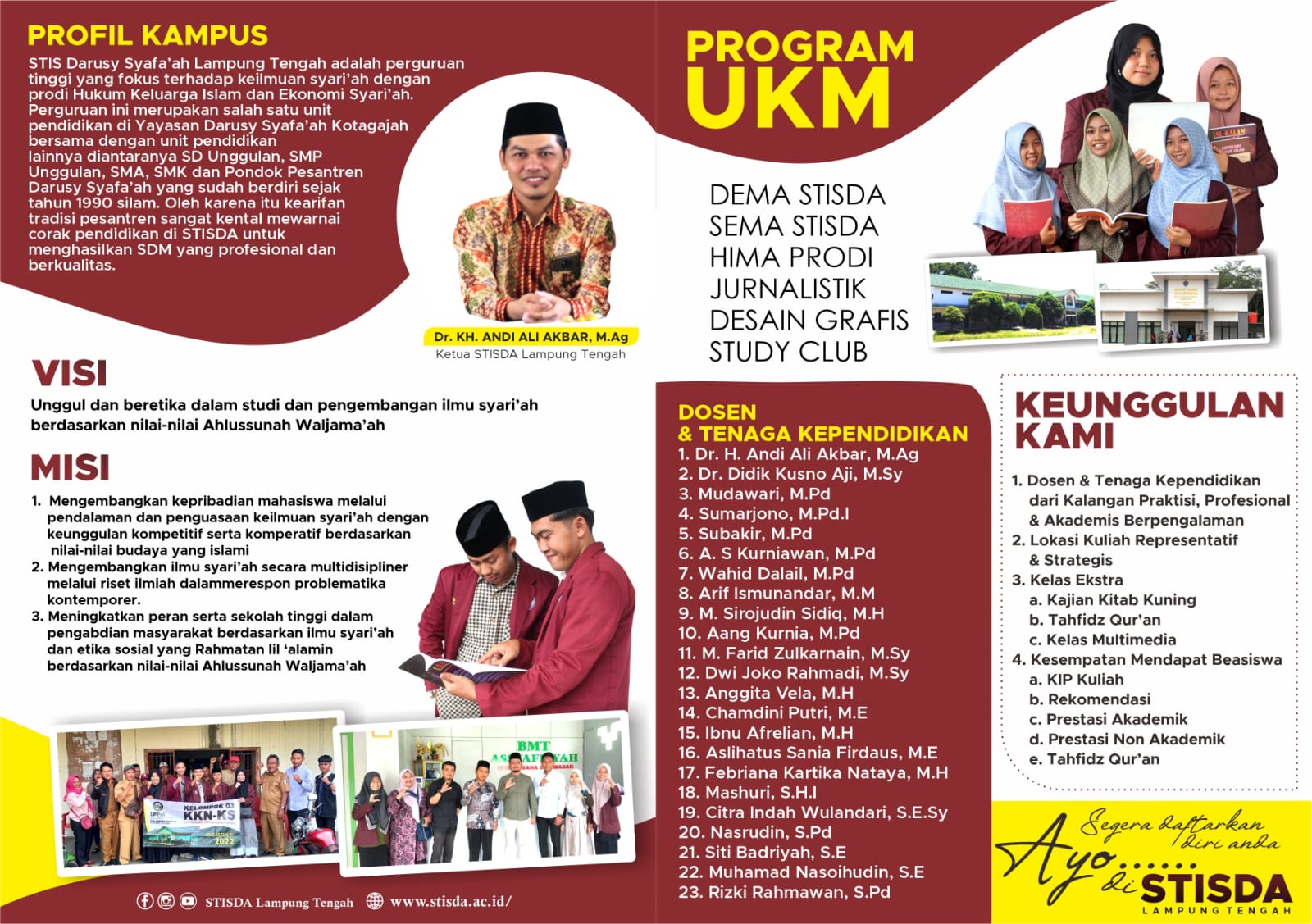 “Sebagai bagian dari Perguruan Tinggi Nahdlatul Ulama (PTNU), saat ini STISDA Lampung Tengah membuka dua program studi, yakni; Ekonomi Syari’ah dan Hukum Keluarga Islam,” tambahnya.