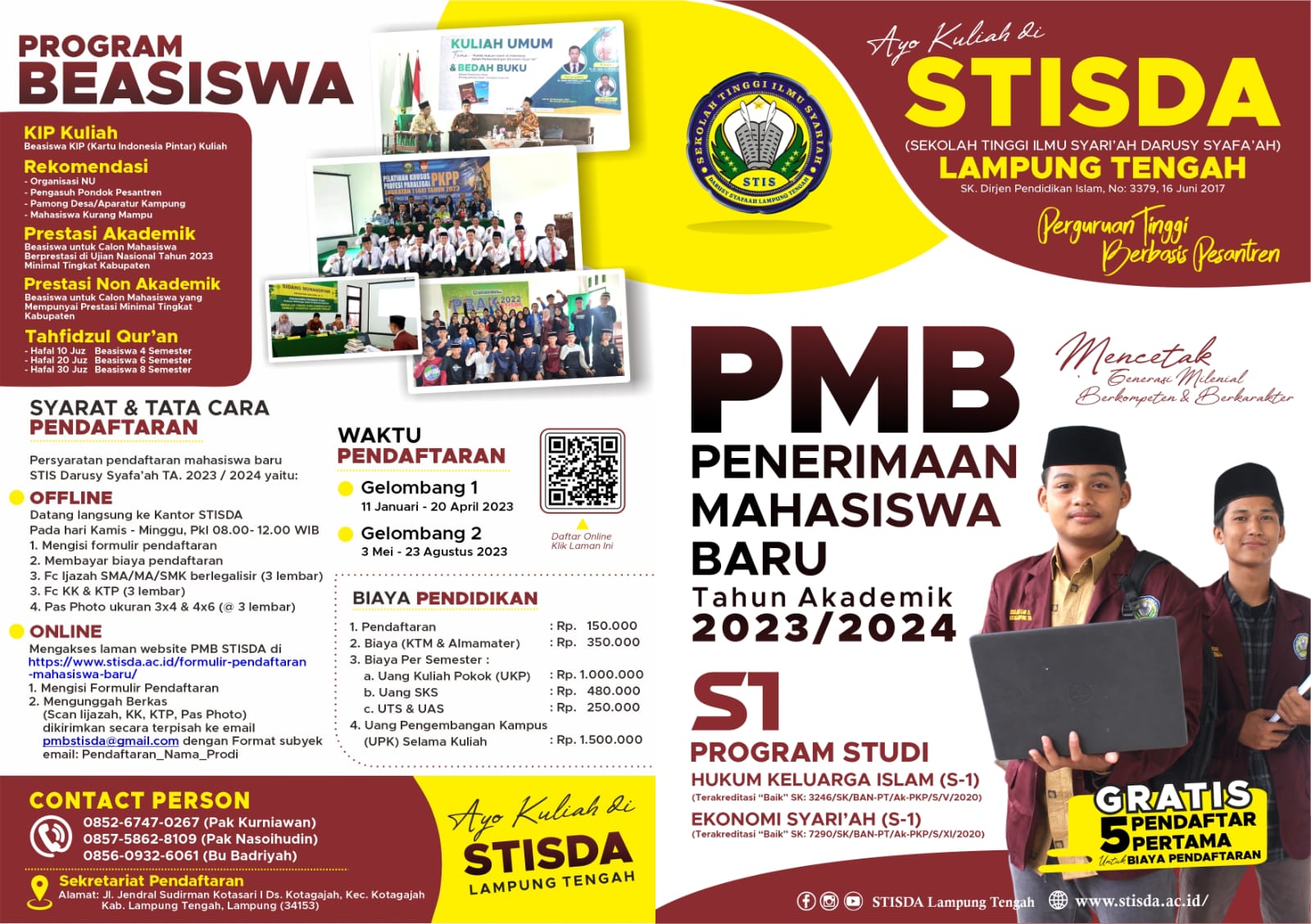 LAMPUNG TENGAH – Kampus hijau Sekolah Tinggi Ilmu Syari’ah Darusy Syafa’ah (STISDA) Lampung Tengah, Provinsi Lampung yang beralamatkan di Jalan Jenderal Sudirman RT 12/RW 06 Dusun Kotasari I, Kampung Kotagajah, Kecamatan Kotagajah, Kabupaten Lampung Tengah, Provinsi Lampung, siap menerima mahasiswa baru tahun akademik 2023/2024.